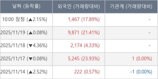 [표] 외국인ㆍ기관 순매매량 (단위 주)