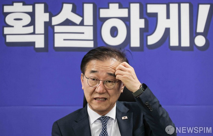 [서울=뉴스핌] 윤창빈 기자 = 김윤덕 국토교통부 장관이 20일 서울 여의도 국회 의원회관에서 열린 더불어민주당 국토위 – 국토교통부 당정협의에서 이마를 만지고 있다. 2025.11.20 pangbin@newspim.com