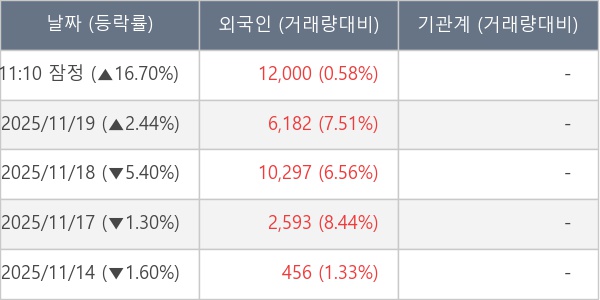[표] 외국인ㆍ기관 순매매량 (단위 주)