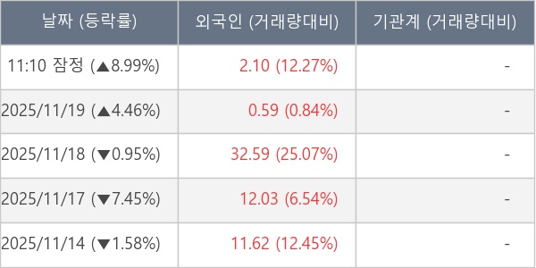 [표] 외국인ㆍ기관 순매매량 (단위 만주)