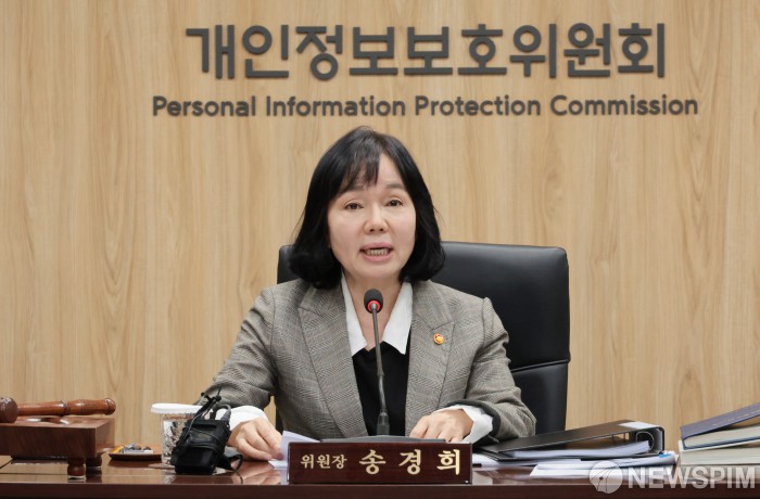 [서울=뉴스핌] 이길동 기자 =송경희 개인정보보호위원회 위원장이 20일 정부서울청사에서 열린 개인정보보호위원회 전체회의를 주재하며 모두 발언을 하고 있다. 2025.11.20 gdlee@newspim.com