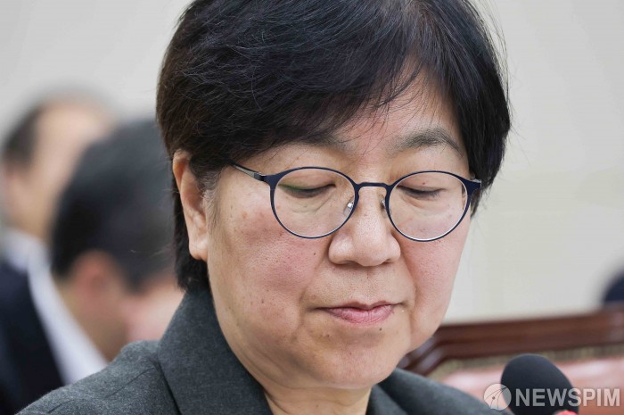 [서울=뉴스핌] 윤창빈 기자 = 정은경 보건복지부 장관이 20일 서울 여의도 국회에서 열린 보건복지위원회 전체회의에서 의원 질문을 듣고 있다. 2025.11.20 pangbin@newspim.com