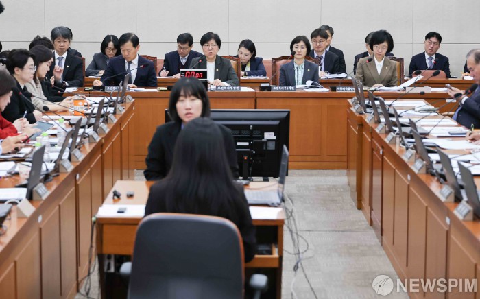 [서울=뉴스핌] 윤창빈 기자 = 정은경 보건복지부 장관이 20일 서울 여의도 국회에서 열린 보건복지위원회 전체회의에서 의원 질문에 답변하고 있다. 2025.11.20 pangbin@newspim.com