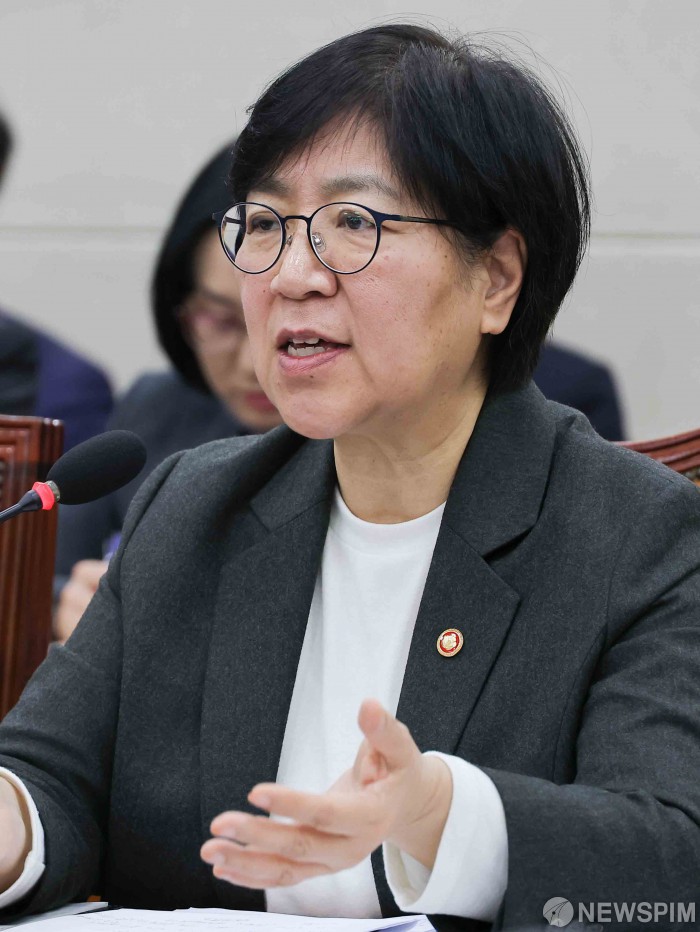 [서울=뉴스핌] 윤창빈 기자 = 정은경 보건복지부 장관이 20일 서울 여의도 국회에서 열린 보건복지위원회 전체회의에서 의원 질문에 답변하고 있다. 2025.11.20 pangbin@newspim.com