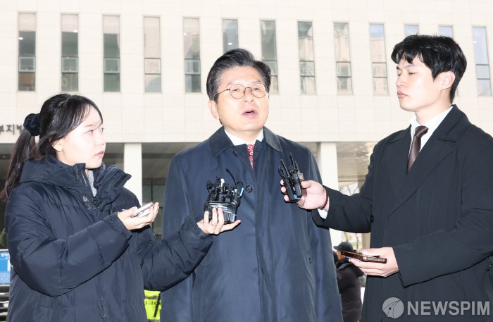 [서울=뉴스핌] 최지환 기자 = 황교안 전 자유한국당 대표(자유와 혁신 대표)가 20일 오후 서울 양천구 서울남부지방법원에서 열린 '국회 패스트트랙(신속처리안건) 충돌 사건' 관련 1심 선고 공판에 출석하고 있다. 2025.11.20 choipix16@newspim.com