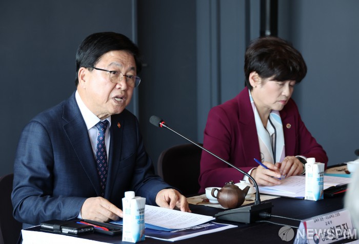 [서울=뉴스핌] 최교진 교육부 장관이 20일 경남 통영 스탠포드 호텔에서 열린 교육부장관-시도교육감 간담회에서 인사말을 하고 있다. [사진=교육부] 2025.11.20 photo@newspim.com