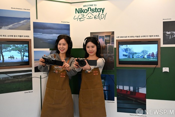 [서울=뉴스핌] 20일 서울 종로구 북촌 코너스퀘어에서 니콘이미징코리아의 니콘스테이 팝업스토어가 오픈한 가운데 모델들이 제품들을 소개하고 있다. 니콘스테이는 니콘만의 컬러와 시네마틱 무드를 여행이라는 키워드로 풀어낸 팝업스토어로 오는 24일까지 운영된다. [사진=니콘이미징코리아] 2025.11.20 photo@newspim.com
