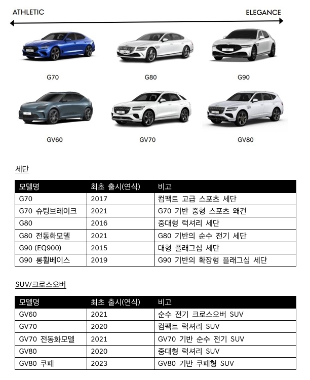 G70·G80·G90·GV60·GV70·GV80 라인업