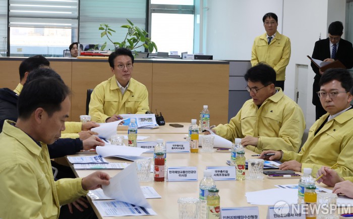 [서울=뉴스핌] 청사사진기자단 = 동절기 해양안전사고 예방 현장점검에 나선 김민석 국무총리가 21일 오전 인천 중구 인천연안여객터미널 운항관리센터를 방문해 박진규 운항관리센터장으로 부터 터미널 안전관리 현황보고를 받고 있다. 2025.11.21 photo@newspim.com