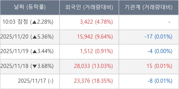 [표] 외국인ㆍ기관 순매매량 (단위 주)