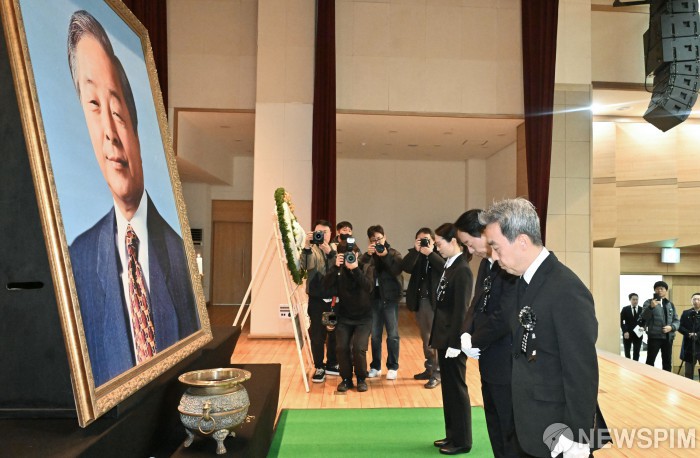 [서울=뉴스핌] 류기찬 기자 = 김현철 김영삼대통령기념재단 이사장이 21일 오전 서울 동작구 국립서울현충원 현충관에서 열린 고(故) 김영삼 전 대통령 서거 10주기 추모식에서 헌화를 마친 뒤 묵념하고 있다. 2025.11.21 ryuchan0925@newspim.com