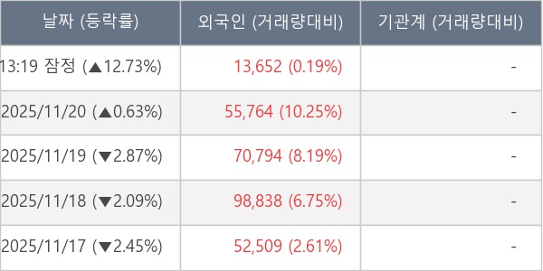 [표] 외국인ㆍ기관 순매매량 (단위 주)