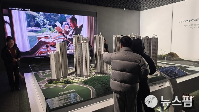 [서울=뉴스핌] 송현도 기자 = 21일 의왕시청역 SK뷰 아이파크 견본주택의 외관의 1층 로비와 유닛을 둘러본 모습. 2025.11.21 dosong@newspim.com