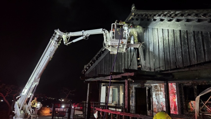 [경주=뉴스핌] 남효선 기자 = 23일 오전 1시 21분쯤 경북 경주시 하동의 한 펜션에서 화재가 발생해 발화 57분 만에 진화됐다. 다행히 인명 피해는 발생하지 않았다.