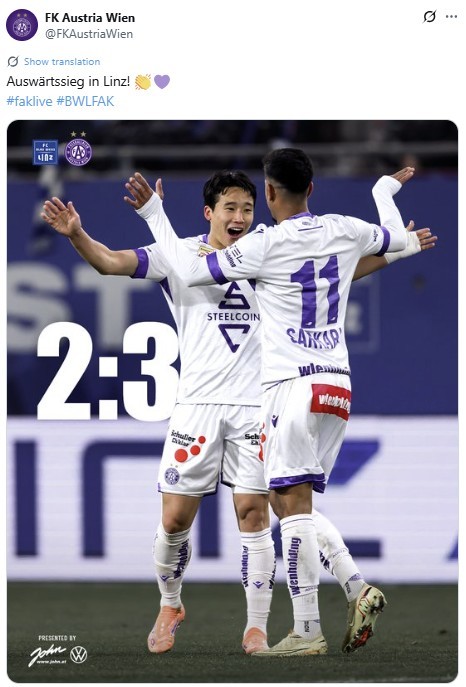 | [서울=뉴스핌] 장환수 스포츠전문기자= 2도움으로 활약하며 아우스트리아 빈의 3-2 역전승을 이끈 이태석. [사진=아우스트리아 빈] 2025.11.23 zangpabo@newspim.com |