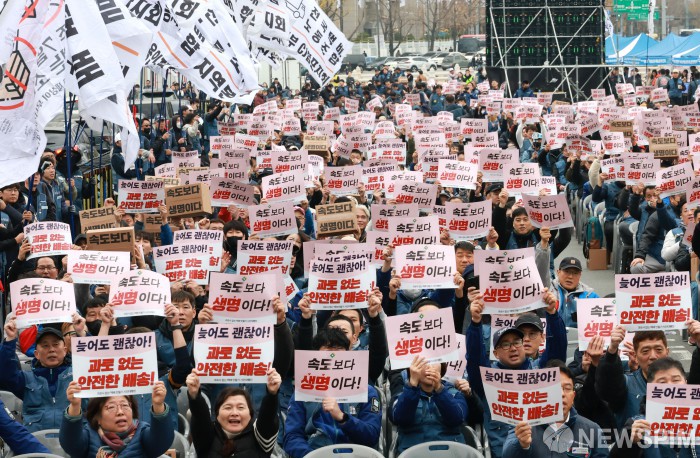 '택배 노동자의 심야 노동과 과로사 해결하라'