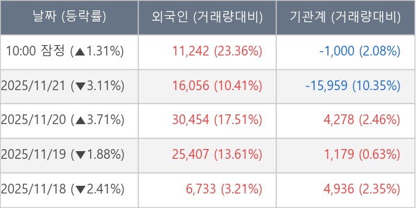 ※ 사모펀드 등 일부 기관의 순매매량은 표시되지 않음