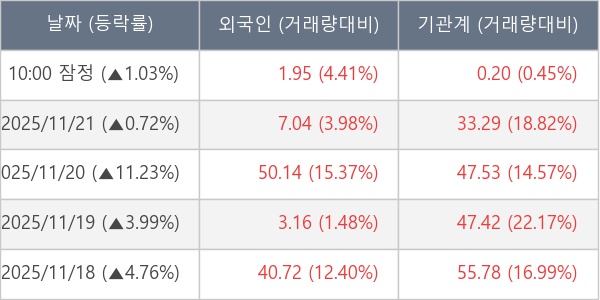 ※ 사모펀드 등 일부 기관의 순매매량은 표시되지 않음