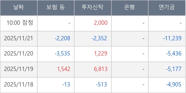 ※ 사모펀드 등 일부 기관의 순매매량은 표시되지 않음