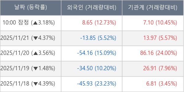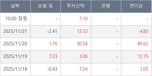 ※ 사모펀드 등 일부 기관의 순매매량은 표시되지 않음