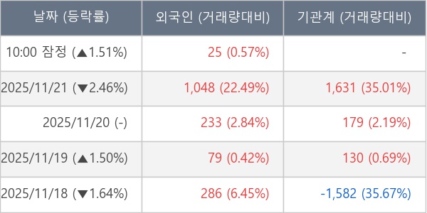 [표] 외국인ㆍ기관 순매매량 (단위 주)