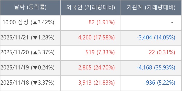 [표] 외국인ㆍ기관 순매매량 (단위 주)