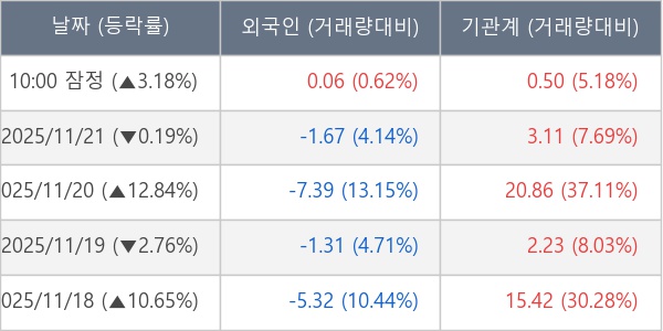 [표] 외국인ㆍ기관 순매매량 (단위 만주)