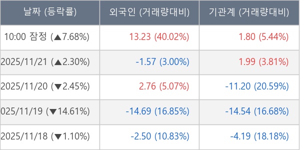 ※ 사모펀드 등 일부 기관의 순매매량은 표시되지 않음