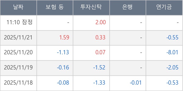 [표] 주요 기관별 순매매량 (단위 만주)