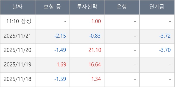 [표] 주요 기관별 순매매량 (단위 만주)