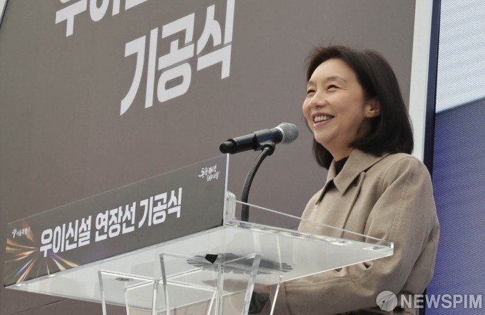 [서울=뉴스핌] 양윤모 기자 = 최호정 서울시의회 의장이 24일 오전 서울 도봉구 방학동 방학사계광장 여름마당에서 개최된 '우이신설 연장선 기공식'에 참석 축사를 하고 있다. 우이신설 연장선 사업은 2032년 개통을 목표로 솔밭공원역에서 1호선 방학역까지 총 3.93km, 3개 정거장 신설을 목표로 총사업비 4,690억 원이 투입되는 도봉구 방학·쌍문 지역의 교통 편의 증진과 지역 발전을 위한 대형 교통망 사업으로 시공사는 ‘HL디앤아이한라 컨소시엄’이다. 행사에는 오세훈 서울시장,최호정 서울시의회 의장,오언석 도봉구청장,오기형 더불어민주당 국회의원 등이 참석했다. 2025.11.24 yym58@newspim.com