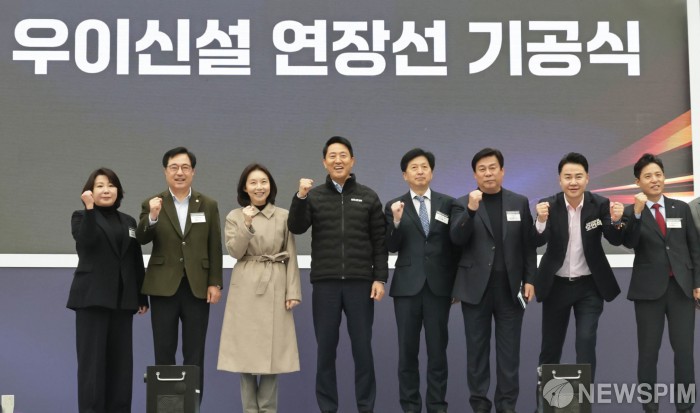 [서울=뉴스핌] 양윤모 기자 = 오세훈 서울시장이 24일 오전 서울 도봉구 방학동 방학사계광장 여름마당에서 개최된 '우이신설 연장선 기공식'에 참석 파이팅을 외치고 있다. 우이신설 연장선 사업은 2032년 개통을 목표로 솔밭공원역에서 1호선 방학역까지 총 3.93km, 3개 정거장 신설을 목표로 총사업비 4,690억 원이 투입되는 도봉구 방학·쌍문 지역의 교통 편의 증진과 지역 발전을 위한 대형 교통망 사업으로 시공사는 ‘HL디앤아이한라 컨소시엄’이다. 행사에는 오세훈 서울시장,최호정 서울시의회 의장,오언석 도봉구청장,오기형 더불어민주당 국회의원 등이 참석했다. 2025.11.24 yym58@newspim.com