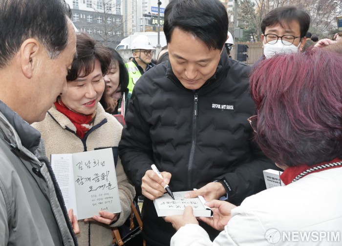 [서울=뉴스핌] 양윤모 기자 = 오세훈 서울시장이 24일 오전 서울 도봉구 방학동 방학사계광장 여름마당에서 개최된 '우이신설 연장선 기공식' 참석후 지지자들에게 사인을 해주고 있다. 우이신설 연장선 사업은 2032년 개통을 목표로 솔밭공원역에서 1호선 방학역까지 총 3.93km, 3개 정거장 신설을 목표로 총사업비 4,690억 원이 투입되는 도봉구 방학·쌍문 지역의 교통 편의 증진과 지역 발전을 위한 대형 교통망 사업으로 시공사는 ‘HL디앤아이한라 컨소시엄’이다. 행사에는 오세훈 서울시장,최호정 서울시의회 의장,오언석 도봉구청장,오기형 더불어민주당 국회의원 등이 참석했다. 2025.11.24 yym58@newspim.com