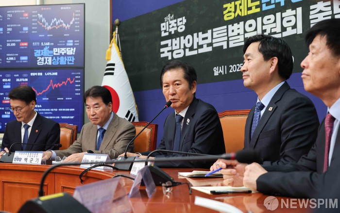 [서울=뉴스핌] 윤창빈 기자 = 정청래 더불어민주당 대표가 24일 서울 여의도 국회에서 열린 국방안보특별위원회 출범식 및 제1차 회의에서 축사를 하고 있다. 2025.11.24 pangbin@newspim.com