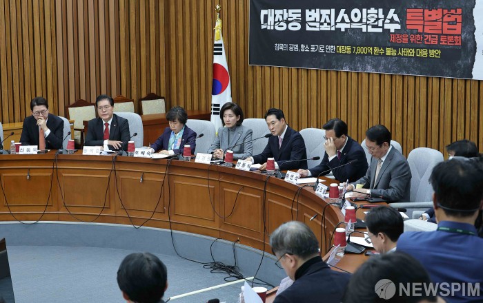 [서울=뉴스핌] 윤창빈 기자 = 장동혁 국민의힘 대표가 24일 서울 여의도 국회에서 열린 대장동 범죄수익환수 특별법 제정을 위한 긴급 토론회에서 인사말을 하고 있다. 2025.11.24 pangbin@newspim.com
