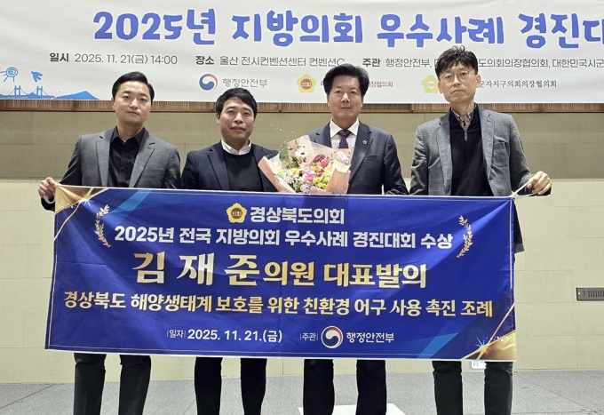 [울진·안동=뉴스핌] 남효선 기자 = 경북도의회 김재준 의원(울진)이 대표 발의한 '경상북도 해양 생태계 보호를 위한 친환경 어구 사용 촉진 조례'가 행정안전부 주관 '2025년 지방 의회 우수 사례 경진대회' 본선에 진출했다.