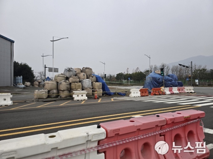 [광양=뉴스핌] 권차열 기자=지난 9월13일 발생한 광양항 동측배후부지 창고 화재 진화후 관계당국의 안일한 조치로 현재까지 화재 원인 물질이 담긴 톤백 수백 개가 도로변에 노출된 채 방치돼 있어 2차 사고 및 환경오염이 우려된다.2025.11.25 chadol999@newspim.com