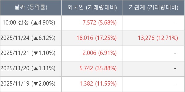 [표] 외국인ㆍ기관 순매매량 (단위 주)