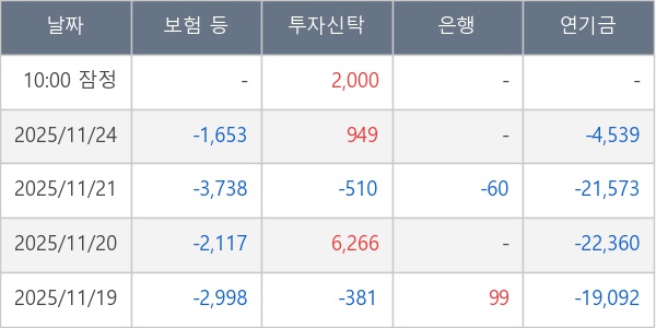 ※ 사모펀드 등 일부 기관의 순매매량은 표시되지 않음