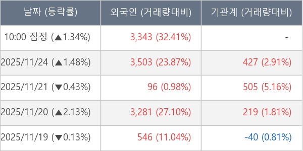 [표] 외국인ㆍ기관 순매매량 (단위 주)