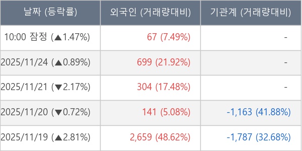 [표] 외국인ㆍ기관 순매매량 (단위 주)