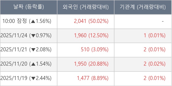 [표] 외국인ㆍ기관 순매매량 (단위 주)
