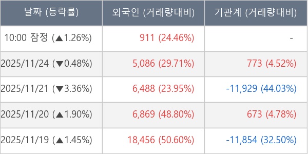[표] 외국인ㆍ기관 순매매량 (단위 주)