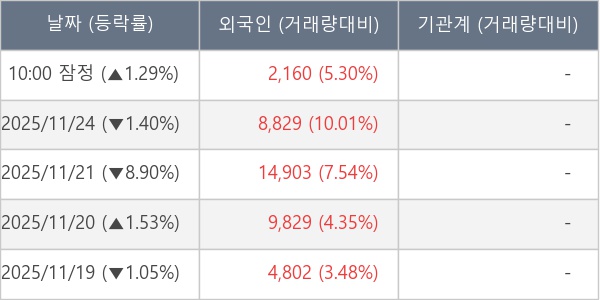 [표] 외국인ㆍ기관 순매매량 (단위 주)