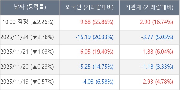 [표] 외국인ㆍ기관 순매매량 (단위 만주)