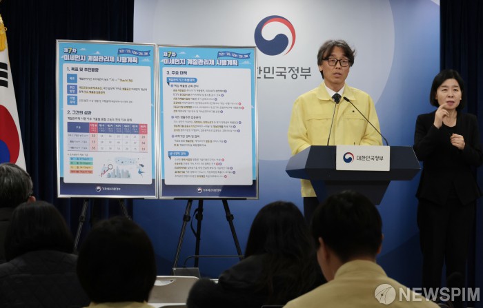 [서울=뉴스핌] 이길동 기자 = 금한승 기후에너지환경부 1차관이 24일 서울 종로구 정부서울청사에서 제7차 미세먼지 계절관리제 시행계획 관련 브리핑을 하고 있다. 2025.11.24gdlee@newspim.com