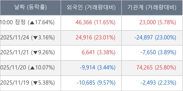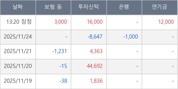 ※ 사모펀드 등 일부 기관의 순매매량은 표시되지 않음