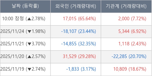 ※ 사모펀드 등 일부 기관의 순매매량은 표시되지 않음