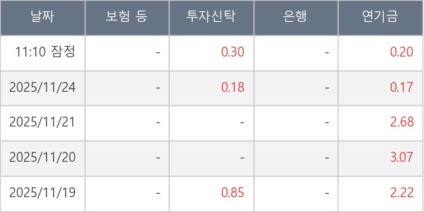 [표] 주요 기관별 순매매량 (단위 만주)