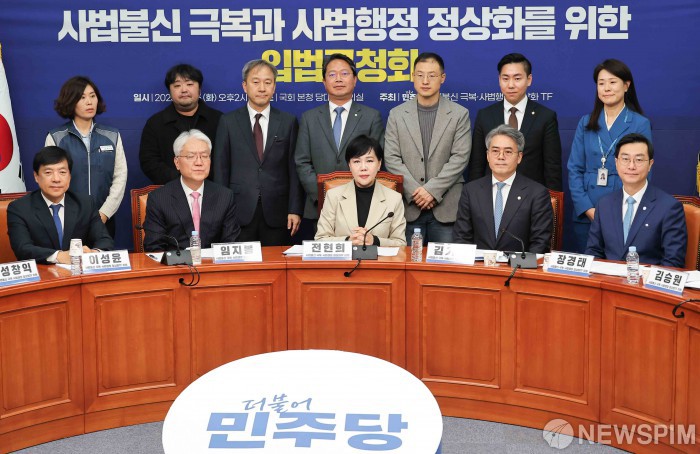 민주당 사법불신 극복·사법행정 정상화 TF 단장을 맡은 전현희 최고위원은 이날 오후 국회에서 열린 입법공청회에서 "사법부가 스스로 초래한 사법 불신을 극복하고 사법행정 정상화를 위한 개혁안을 발표한다"며 이같이 밝혔다.